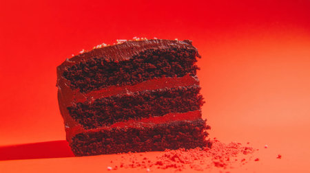 Triangle slice piece of delicious dark chocolate fudge cake on background bokeh. Concept to present homemade bakery dessert