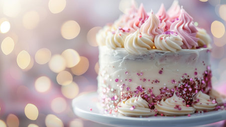Cake with Bokeh Background, Banner Graphic Design, Bakery Candy Gift Card Template, Digital Backdrop for Website, Decorations or your Print on Demand Business - generated by AI