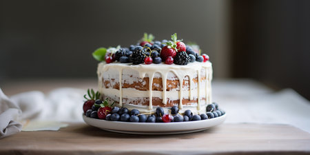 homemade sponge cake with blueberries, blueberries and raspberries, butter cream