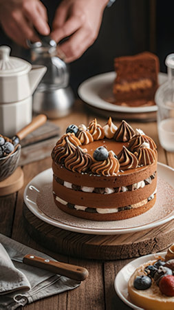 AI Generated. Irresistible Chocolate and Cream Layered Cake