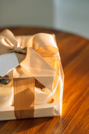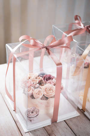 Cake in transparent box, gift for special day