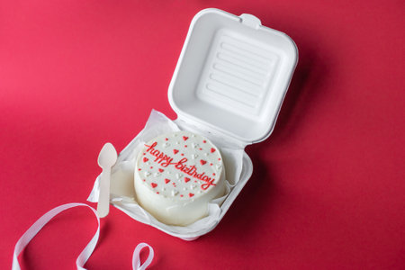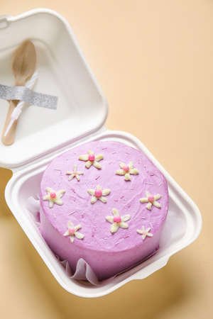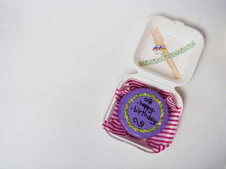 Korean cake lunch box, cake with the inscription happy birthday. place for your text