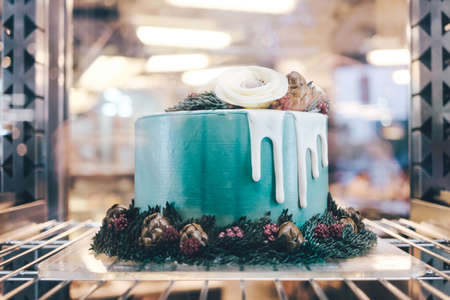 Beautiful unusual pretty tasty cake pie, birthday party sweet colorful realistic different greeting decorating