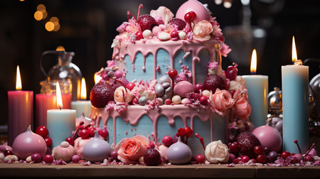 festive desserts for birthday in form of beautiful decorated birthday cake, created with generative ai