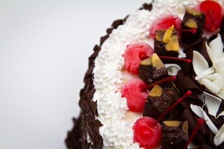 Chocolate cake with red cherries