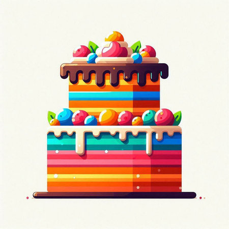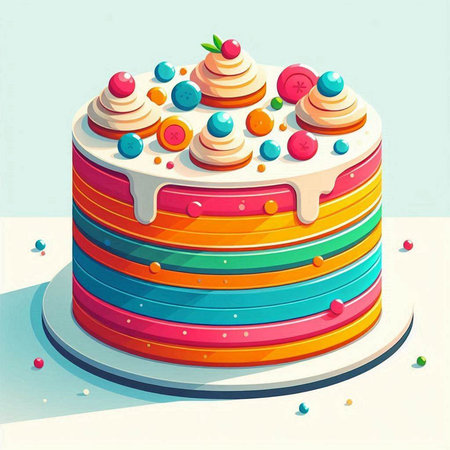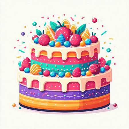 Illustration of a colorful birthday cake on a white background - vector