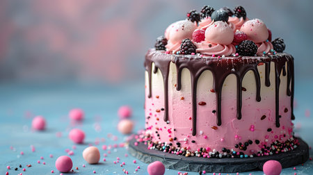 Birthday cake with colorful Sprinkles over a blue background.
