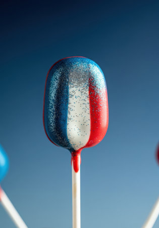 Colorful patriotic lollipop with red, white, and blue design for Independence Day celebration.