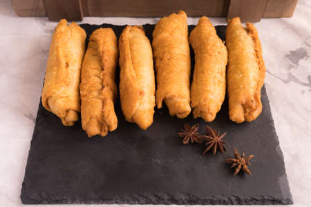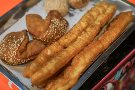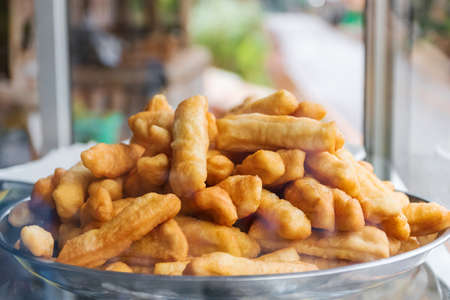 Close up deep fried dough stick on the tray