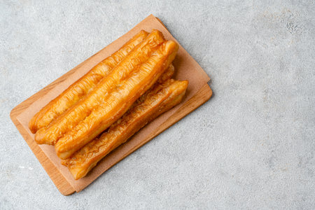 deep-fried dough stick on wood plate