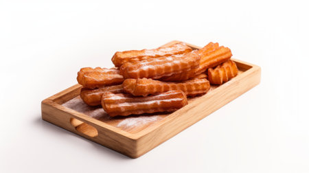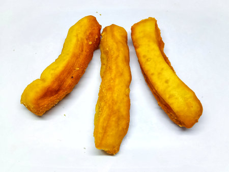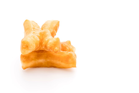 Deep-fried dough stick are placed on a white isolated background.