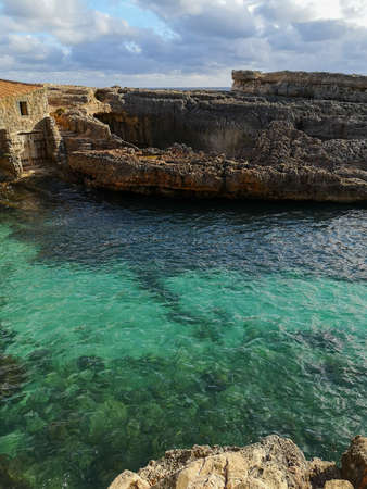 picturesque rough coastline on a cloudy day near Santanyi, Mallorca, Spain