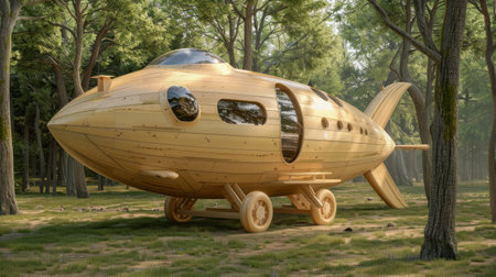 Wooden Spaceship Cabin in Forest. Unique Eco-Friendly Tiny Home Interior Design