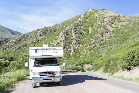 Glenwood Springs, Colorado, USA-June 20, 2015. Motorhome parked on the side of South Canyon Creek near Glenwood Springs, Colorado.