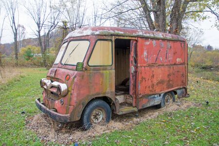 Forgotten Abandoned retro caravan. Old travel. Generate AI