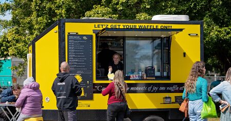 Mackay, Queensland, Australia - 20th July 2019: Food street market stall vendor at city's annual outdoor food and wine festival