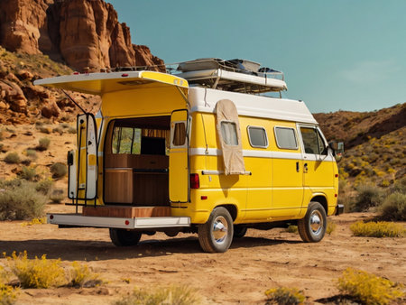 Rugged all-terrain motorhome for extreme adventures in mountainous desert landscapes.