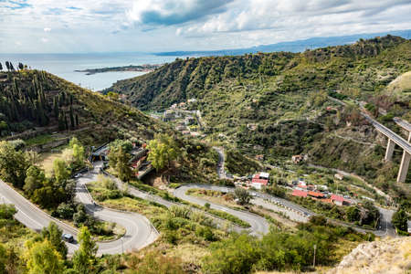 A view of the picturesque bay and the volcano Etna. Taormina. Sicily. Italy