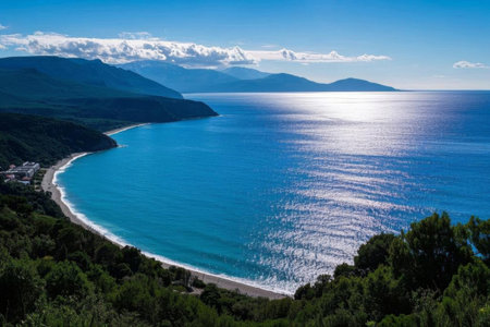 Generative AI : Aerial view of Thracian Sea coastline Makri East Macedonia and Thrace Greece