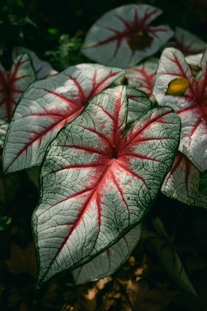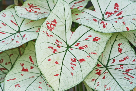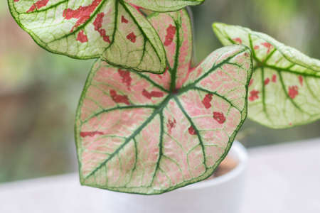 Caladium bicolor is regarded as the Queen of the Leafy Plants. Close up of Caladium Bicolor beautiful leaves.