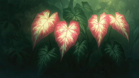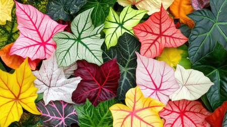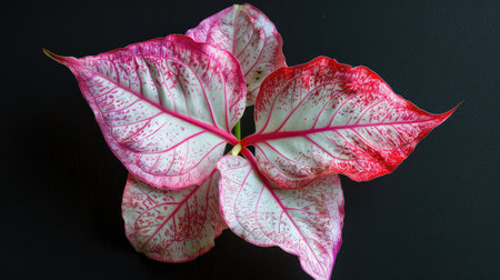 Captivating image of a caladium leaf showcasing vibrant colors and intricate vein patterns. Ideal for nature lovers, botanical themes, or wellness visuals.