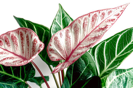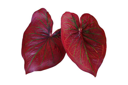 Red foliage with green veins Caladium fancy leaved tropical foliage plant leaves popular houseplant isolated on white background