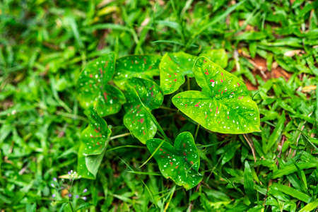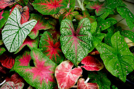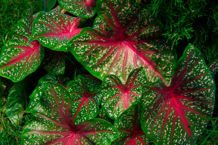 Beautiful Caladium bicolor colorful leaf in the garden.