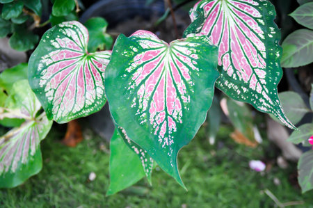 Caladium ,Caladium ThaiBeauty or Caladium bicolor or Araceae or pink leaf or pink and green leaf