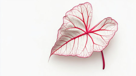 This image features a striking caladium leaf showcasing detailed veins and a vivid border, set against a pristine white background, ideal for botanical and nature projects.