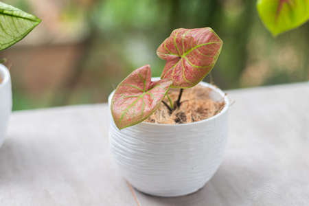 Caladium New Wave Bubble , Caladium bicolor Vent or Alocasia macrorrhizos or Caladium bicolor or pink leaf and Colocasia esculenta plant