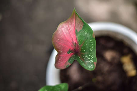 The One Water Drop on The Fancy leaved Caladium in Pot