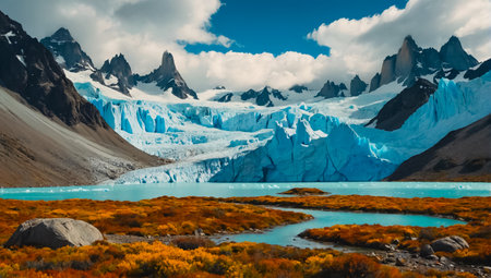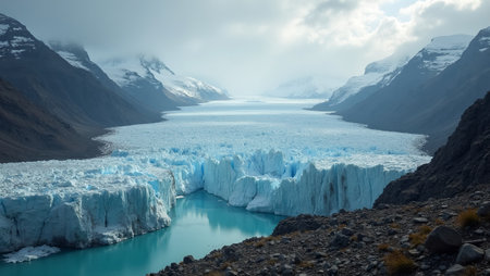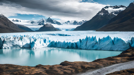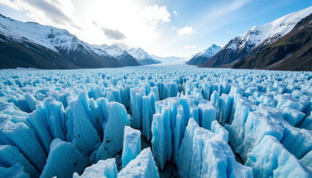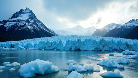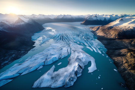 Majestic glacier cuts through rugged landscape catching light symbolizing Earth's beauty