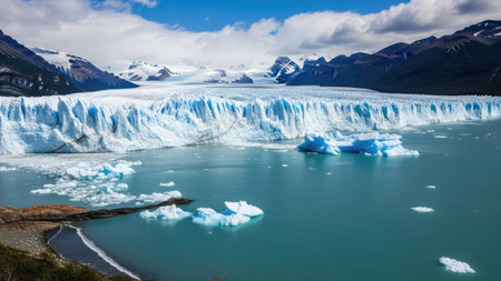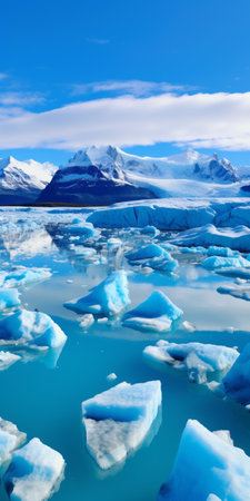 Majestic Blue Glacier amidst Mountains and Icebergs