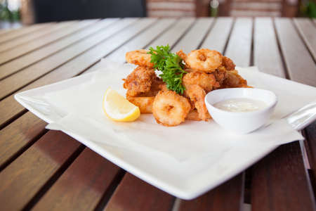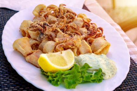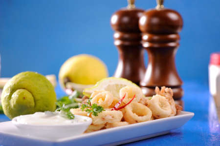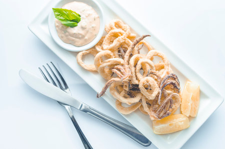 fried seafood calamar or calamaris with sauce
