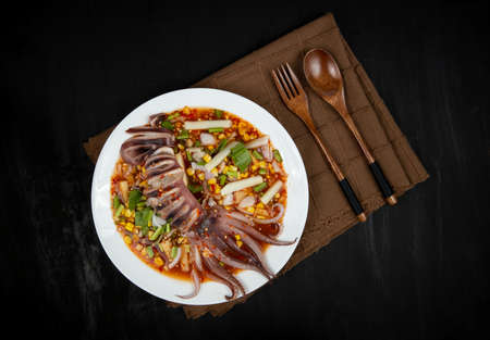 Squid steamed with lime,Thai food , hot and spicy