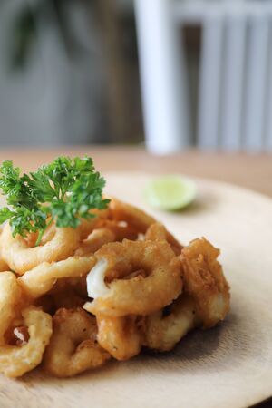 Fried squid on white plate