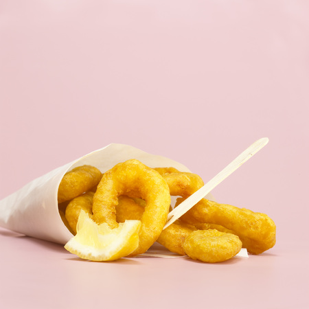 fried squid rings breaded with lemon