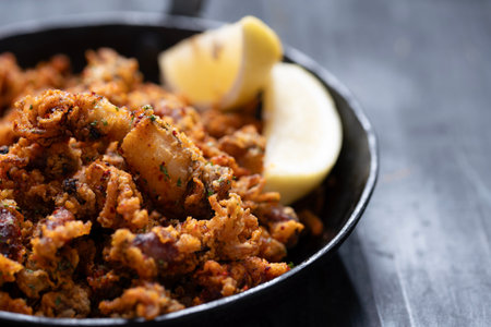 Roman squid. Battered squid, traditional Spanish tapa recipe.