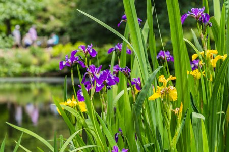 Yellow and purple iris on the water front