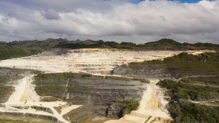 Open pit limestone quarry in the mountains of Bohol Island, Philippines. limestone quarry view from above.