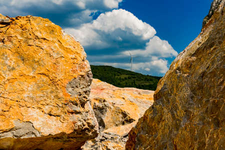 Large limestone boulders in a limestone quarry, extraction of building material