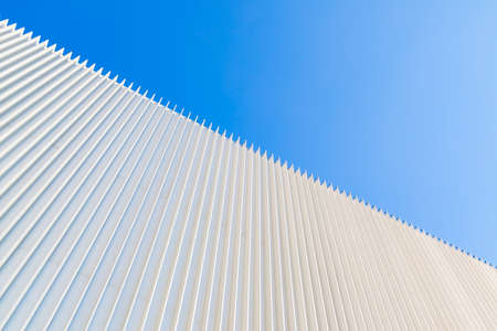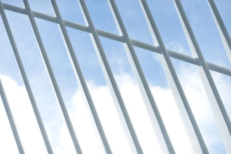 Steel pattern White line geometric form Architecture details Blue sky background