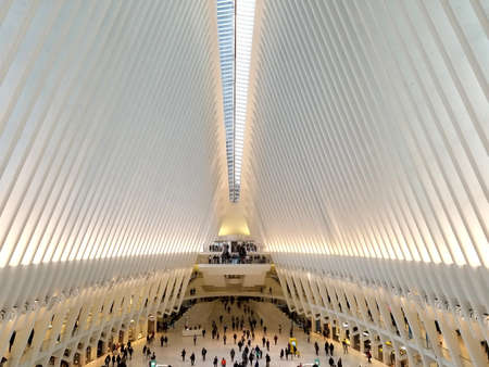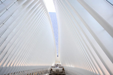 New York, United States of America - September 19, 2019: Interior view of the World Trade Center train station, also called Oculus