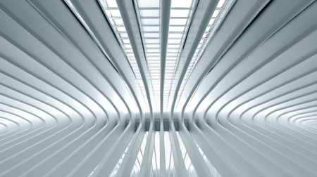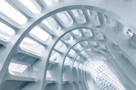 A stunning modern architectural interior featuring dynamic curved lines that create a sense of movement and spaciousness illuminated by natural light.