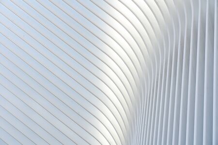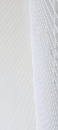 New York City, USA - December 19, 2019: World Trade Center Transportation Hub ( Oculus) designed by Santiago Calatrava architect in Financial District day light low angle close up view