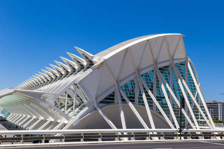 The futuristic facade of a modern building in Valencia. The modern design of the future in the city of arts and Sciences.