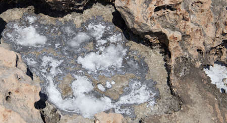 the rocky seashore in the form of rocks and depressions, against the background of the rock, as an abstraction, the image and patterns of nature on the stones