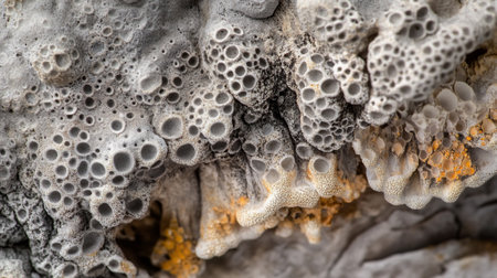 Zoomedin shot of porous concrete revealing a unique pattern of small and irregular pores resembling a lunar landscape