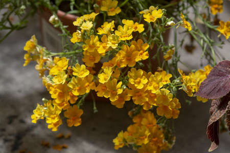 Yellow Cineraria flowers. Spring garden series, Mallorca, Spain.