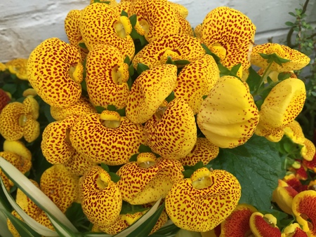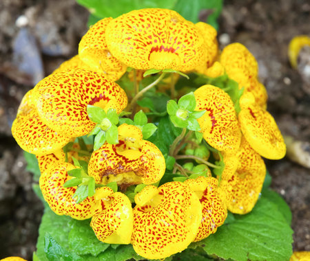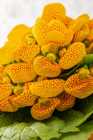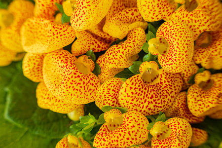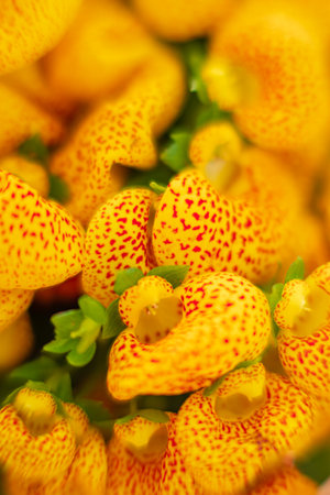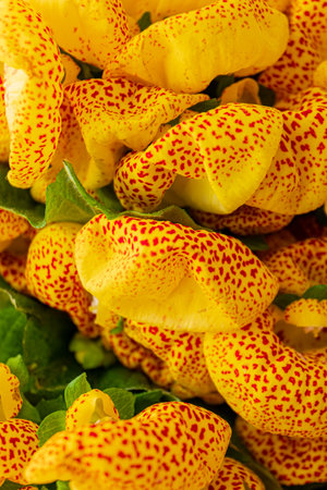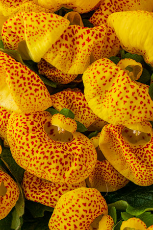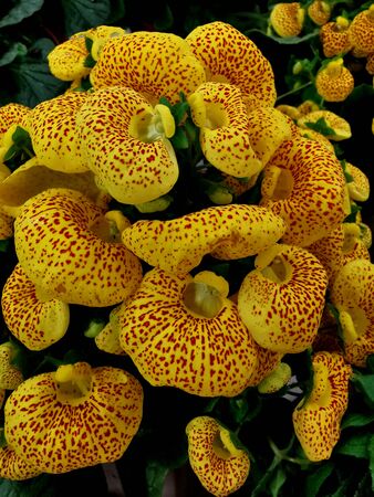 Beautiful Calceolaria flower also called lady's purse, slipper flower and pocketbook flower